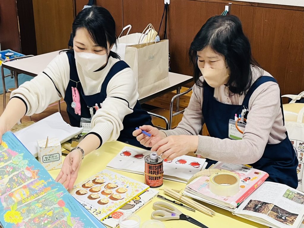 ただ絵本を置いている場所ではなく、「子どもと本の広場・南大泉図書館」の職員の方々にお越しいただき、絵本の取り扱いや補修方法を講習していただきました。