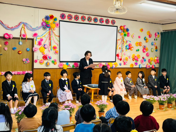 子どもたちの成長を記録した動画上映からスタートした今年の卒園式。